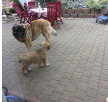 Mit fortschreitendem Alter unseres Dicken und dem Verbund unseres Eddy’s mit seinem Rudel keimte in uns der Gedanke einen weiteren Leonberger aufzunehmen. Diesmal sollte es eine Hündin sein. Nach einiger Recherche im Internet wurden wir im benachbarten Polen beim Zwinger “Cavis Leonis” fündig. Da unser Eddy zu diesem Zeitpunkt schon kastriert war sahen wir keine Schwierigkeiten.Im September 2014 zog die kleine Dame bei uns ein. Meine Eltern, die Chows Chows züchteten, weckten in uns den Ehrgeiz unsere “kleine Dame” auf der Rassehundausstellung in Erfurt zu präsentieren. Völlig unvoreingenommen meldeten wir sie an. Bei dieser Gelegenheit lernten wir Mitglieder der Thüringer Landesgruppe des DCLH kennen. Unser nächster Schritt wurde die Mitgliedschaft in der Landesgruppe Thüringen. Nach mehreren gemeinsamen Aktivitäten entschlossen wir unsere “Dame” zur Zucht zuzulassen. Im September 2017 nahmen wir erfolgreich an der Körung in Harkerode teil. Auch die erforderlichen Untersuchungen und Gen Test wurden mit Erfolg gemeistert.Somit ist Oksana seit September 2017 zur Zucht zugelassen.Aufgrund einer Verletzung im Ellenbogen und der darausresultierenden Operration nahmen wir Oksana aus der Zucht.